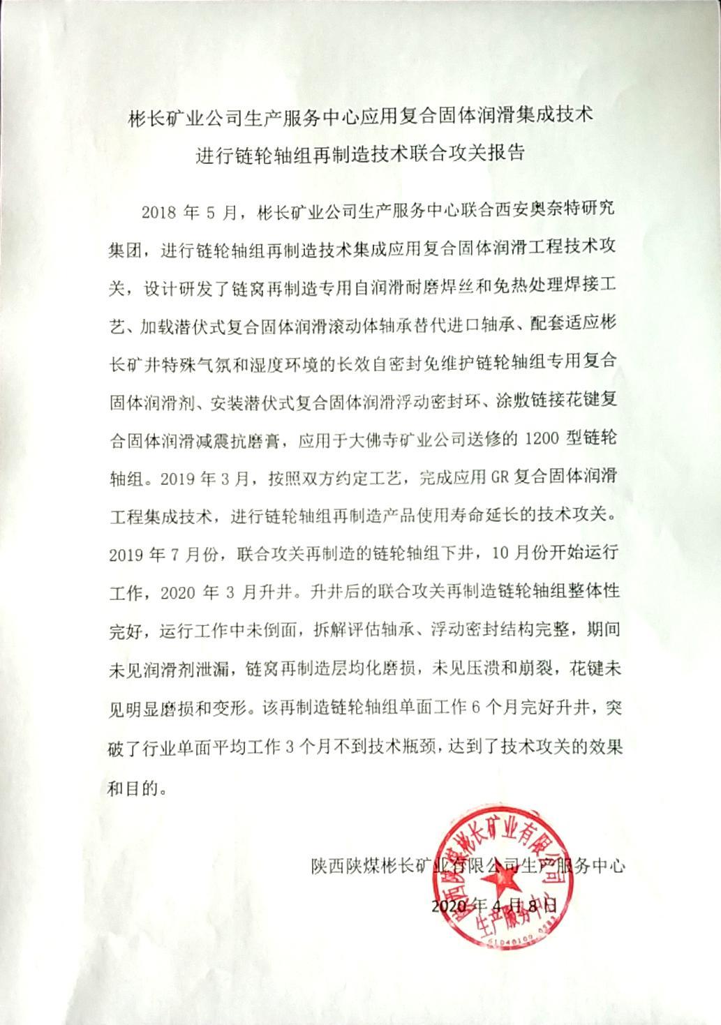 復(fù)合固體潤滑工業(yè)集成再制造技術(shù)報告