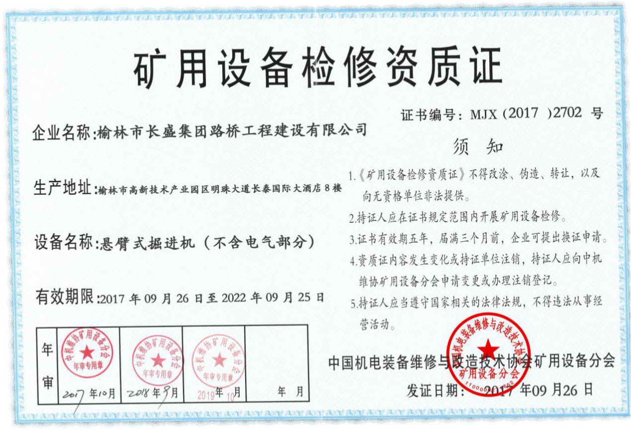 礦用設(shè)備檢修資質(zhì)-懸臂式掘進(jìn)機(jī)