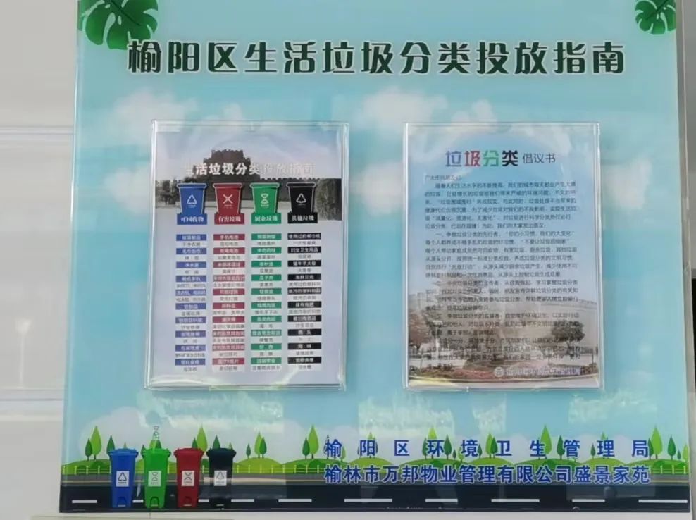 為積極響應國家節(jié)能環(huán)保號召及我市創(chuàng)建國家級衛(wèi)生城市、文明城市,根據(jù)《榆區(qū)政辦【201983號文件》精神,航宇路街道作為榆陽區(qū)垃圾分類區(qū)域試點單位,我公司所服務的項目盛景家苑住宅小區(qū)榮幸作為試點小區(qū)開展此項工作。在榆陽區(qū)政府、榆陽區(qū)環(huán)衛(wèi)部門統(tǒng)一指導和安排下,盛景家苑小區(qū)物業(yè)服務中心工作人員積極配合做好此項工作,推進完成了垃圾亭地面改造工程,在小區(qū)地面建設了4個生活垃圾亭,并配置分類垃圾桶,安裝投放垃圾便民拉手。張貼垃圾分類宣傳展板、小區(qū)顯著位置安裝智能垃圾亭1個。并為業(yè)主免費發(fā)放垃圾桶。