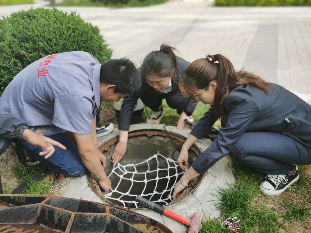 在井蓋防墜網(wǎng)安裝現(xiàn)場(chǎng),工程師傅們先將管道進(jìn)行細(xì)致的排查、疏通和維護(hù),在保障各類設(shè)施正常運(yùn)行后,才進(jìn)行安裝防護(hù)網(wǎng)工作,預(yù)計(jì)完成園區(qū)內(nèi)外170個(gè)井蓋加裝防墜網(wǎng)工作,由于工作量較大,安裝師傅長(zhǎng)時(shí)間在井內(nèi)工作,導(dǎo)致一天下來疲憊不堪,雖然疲憊,但他們?nèi)匀粓?jiān)持加班加點(diǎn)施工,為的是爭(zhēng)取早日完成防護(hù)網(wǎng)加裝工作,為的是避免因井蓋帶來的安全隱患。為的是讓業(yè)主們的出行能平平安安。