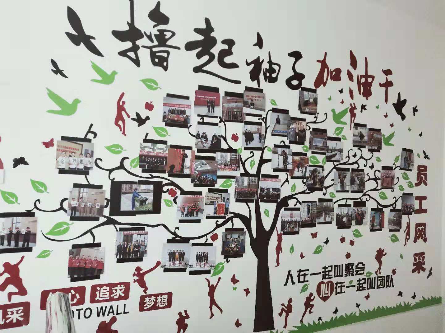 為加強(qiáng)公司企業(yè)文化管理,培育良好的企業(yè)文化氛圍,促進(jìn)企業(yè)文化建設(shè)工作健康有序發(fā)展, 2018年9月,我們選用亞克力材料的墻貼“成功的階梯”,激勵(lì)員工激發(fā)潛能,積極向上; 10月建立起照片墻,把我們的團(tuán)隊(duì)、員工風(fēng)采照片展現(xiàn)在這面有限的墻上。 |