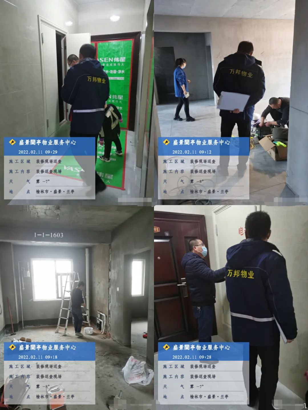 二月萬物復(fù)蘇,二月鳥語花香,二月生機(jī)盎然, 這個二月,我們始終以誠相待,用心服務(wù)!在園區(qū)裝修期間,盛景蘭亭服務(wù)中心成立了由工程部、客服部、環(huán)境部、安保部多部門人員組成的裝修特巡隊,集中對樓棟裝修情況進(jìn)行巡查、管控,整個小區(qū)裝修工作井然有序。