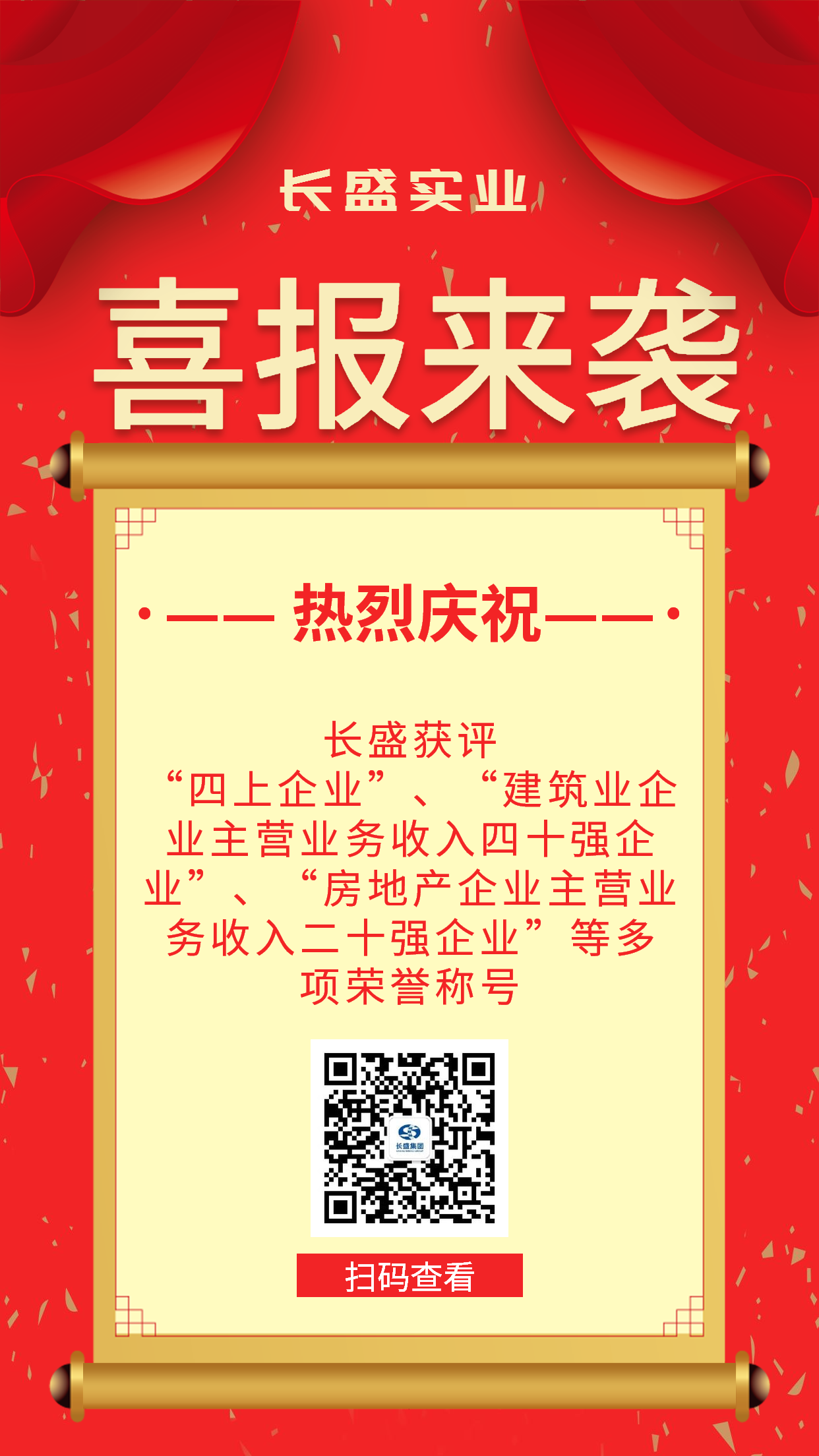 【喜報(bào)】長(zhǎng)盛獲評(píng)“四上企業(yè)”、“建筑業(yè)企業(yè)主營(yíng)業(yè)務(wù)收入四十強(qiáng)企業(yè)”、“房地產(chǎn)企業(yè)主營(yíng)業(yè)務(wù)收入二十強(qiáng)企業(yè)”等多項(xiàng)榮譽(yù)