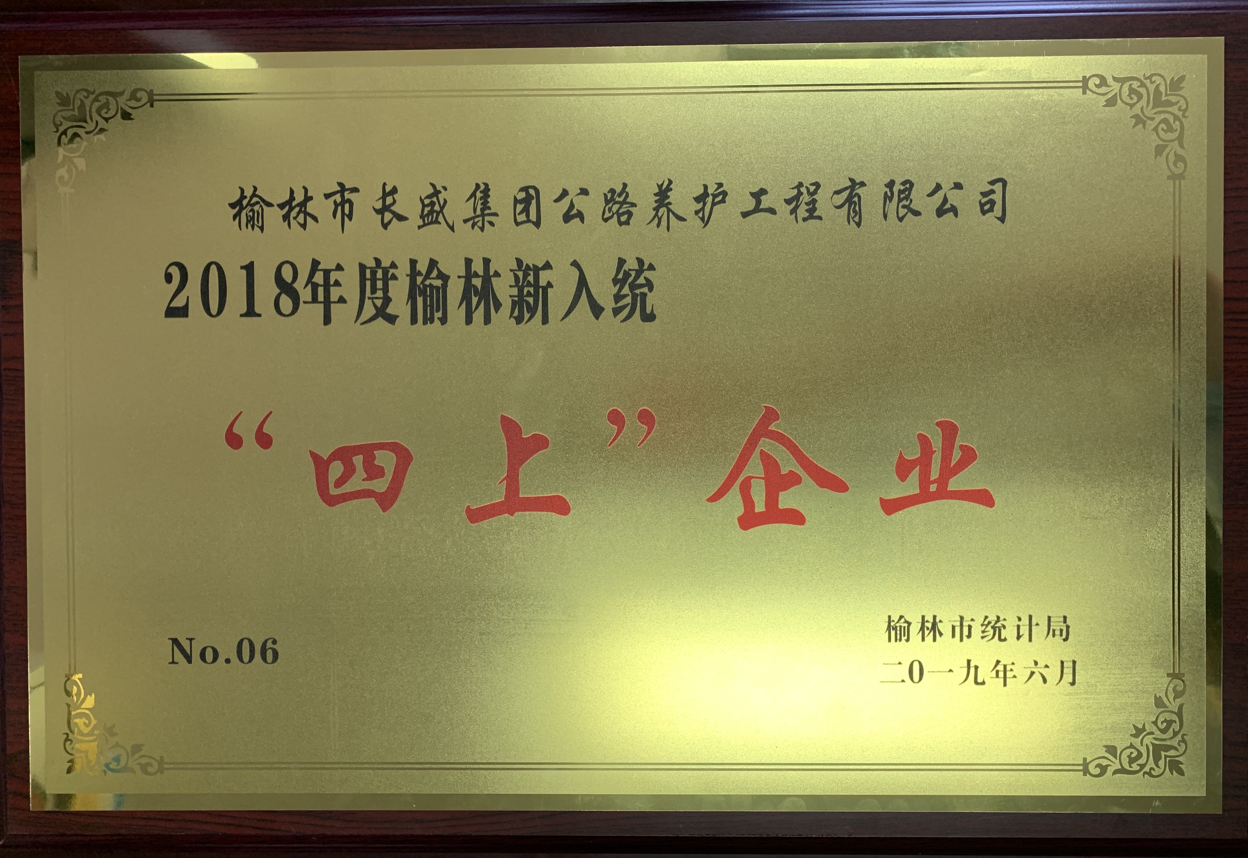 “榆林市長(zhǎng)盛集團(tuán)公路養(yǎng)護(hù)工程有限公司”獲評(píng)“2018年度榆林新入統(tǒng)四上企業(yè)”